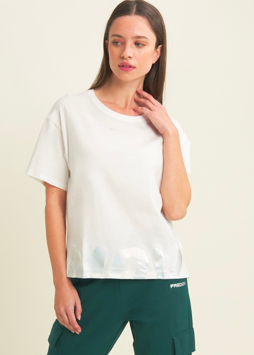 パール?シルバーの光沢のあるTシャツの生地とは違う…ロゴがおしゃれ👍